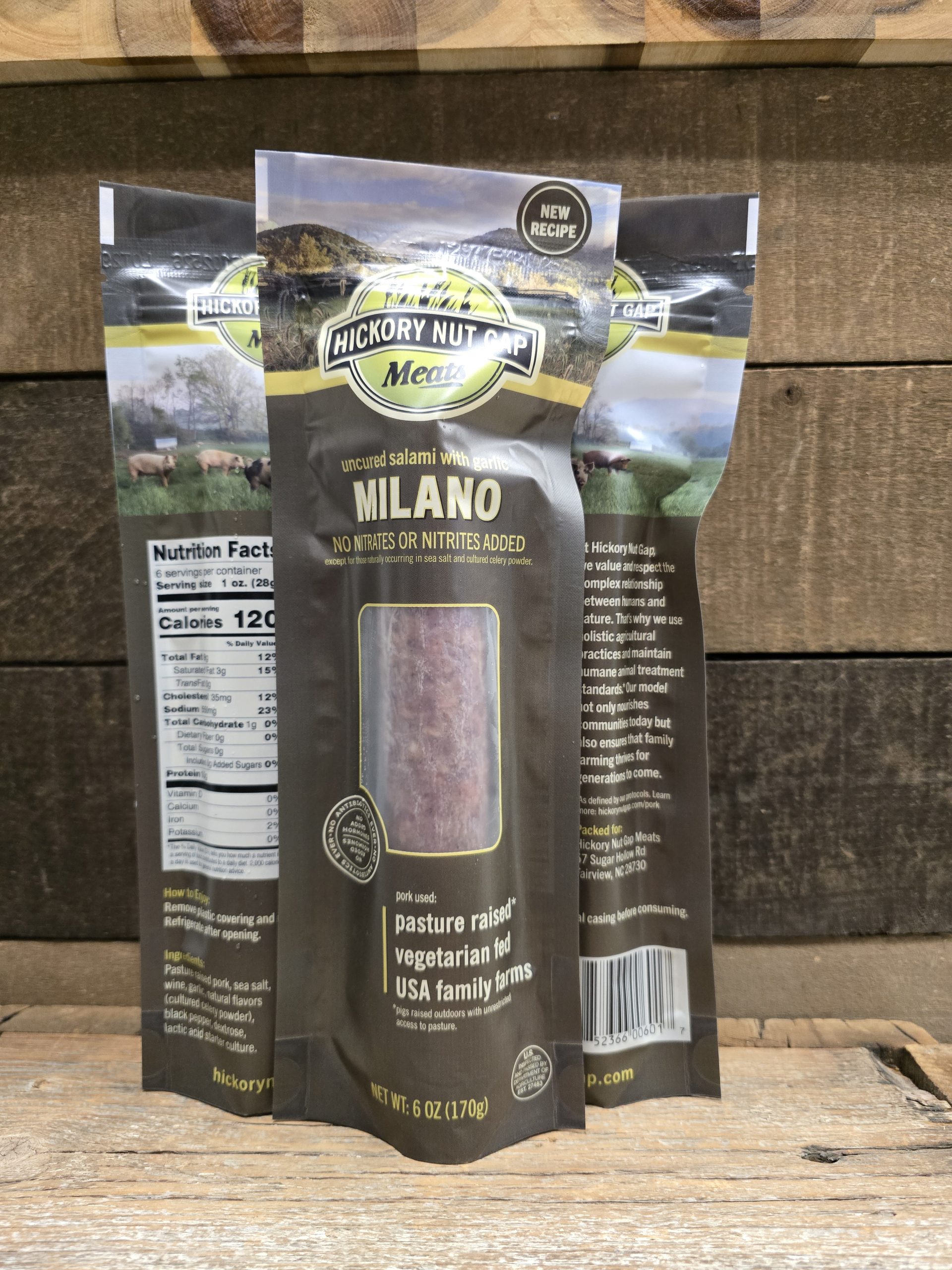 We have partnered with our friends at Hickory Nut Gap out of the Asheville, NC area to offer Pastured Raised Salami Milano! It is made from pastured pork just like our own. It has no nitrites or nitrates added! Classic salami with wine and garlic, resealable pouch! Great item to added to your cart and know it was produced with regenerative practices that align with our own farm’s protocols.